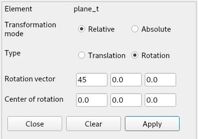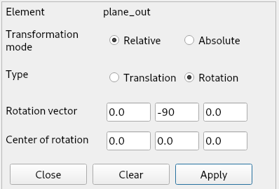 Note that we do the rotation on plane_out before the translation. Because rotations and translations do not commute, it is important to apply these in the intended order.