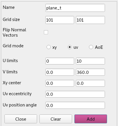 From the Ray-Tracer menu we select Make Frame > Gaussian and we pass in the following parameters: