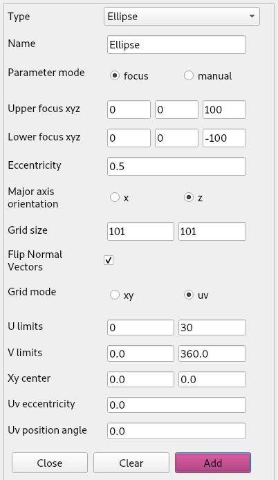 As a setup we will define a paraboloid, an ellipsoid and two planes with the following parameters: